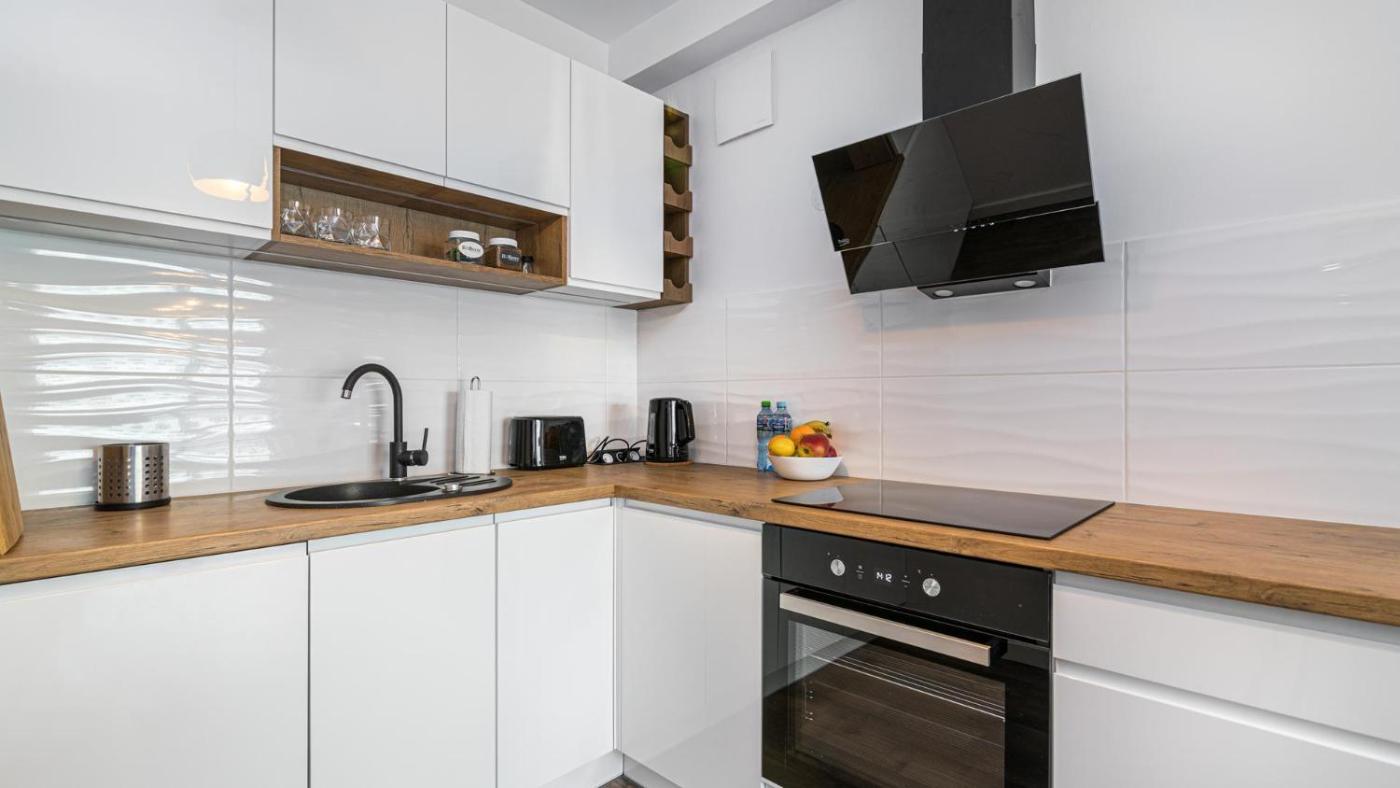 Apartament typu Deluxe. Featuring a private entrance, this apartment comprises 1 living room, 1 separate bedroom and 1 bathroom with a shower and a hairdryer. The well-equipped kitchenette features a stovetop, a refrigerator, a dishwasher and kitchenware. The apartment provides a washing machine, a seating area, a dining area, a flat-screen TV with cable channels, as well as city views. The unit offers 2 beds. Apartament - 4 osobowy. Powierzchnia pokoju ok.: 45 mkw.