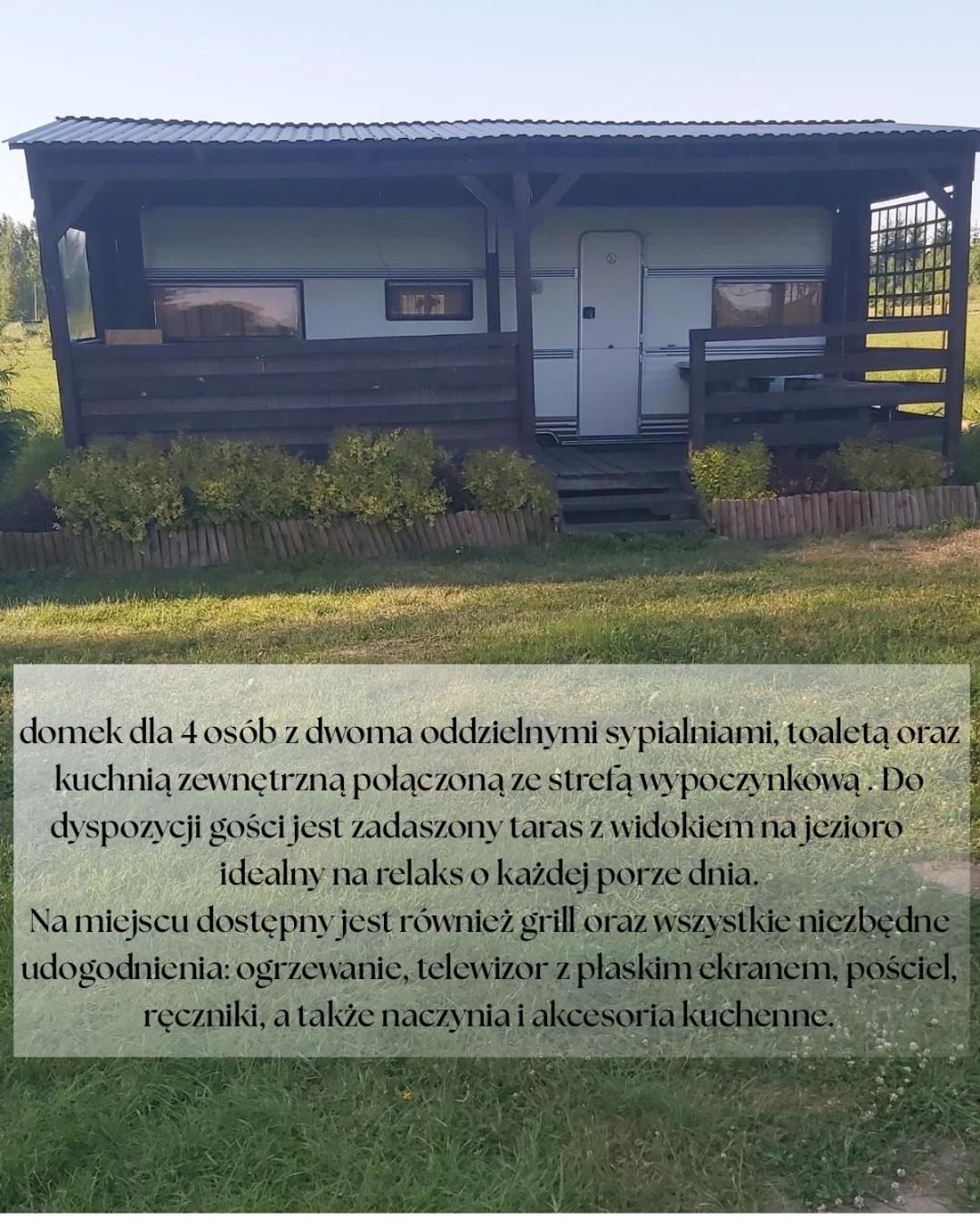 Domek holenderski. This mobile home comes with 1 living room, 2 separate bedrooms and 1 bathroom with a shower. Guests will find a refrigerator and kitchenware in the kitchen. The mobile home also includes a barbecue. Boasting a terrace with lake views, this mobile home also features a seating area and a flat-screen TV. The unit has 3 beds. Domek holenderski - 6 osobowy. Powierzchnia pokoju ok.: 27 mkw. ;