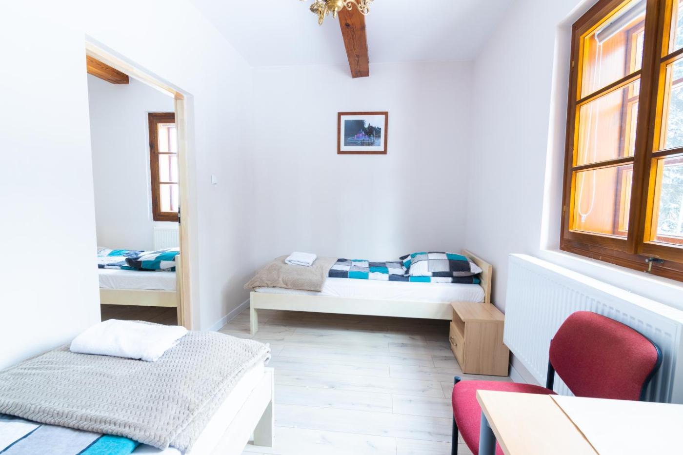 Pokój Trzyosobowy typu Basic ze wspólną łazienką. The triple room includes a shared bathroom fitted with a shower. The unit has 3 beds. Pokój Trzyosobowy - 15 osobowy. ;