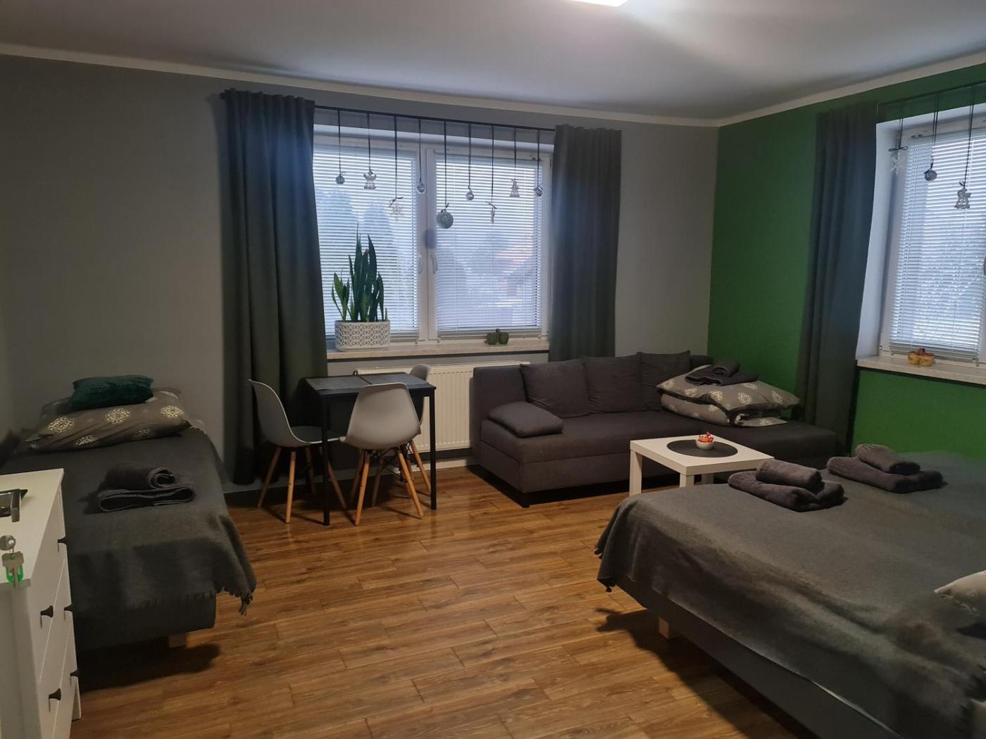 Apartament z 3 sypialniami. Boasting a private entrance, this spacious apartment also includes 3 separate bedrooms and 3 bathrooms with a walk-in shower and a hairdryer. Guests will find a stovetop, a refrigerator, kitchenware and an oven in the well-equipped kitchen. The apartment also features a barbecue. Featuring a terrace with garden views, this apartment also offers a dining area and a flat-screen TV. The unit has 10 beds. Apartament - 12 osobowy. Powierzchnia pokoju ok.: 100 mkw.