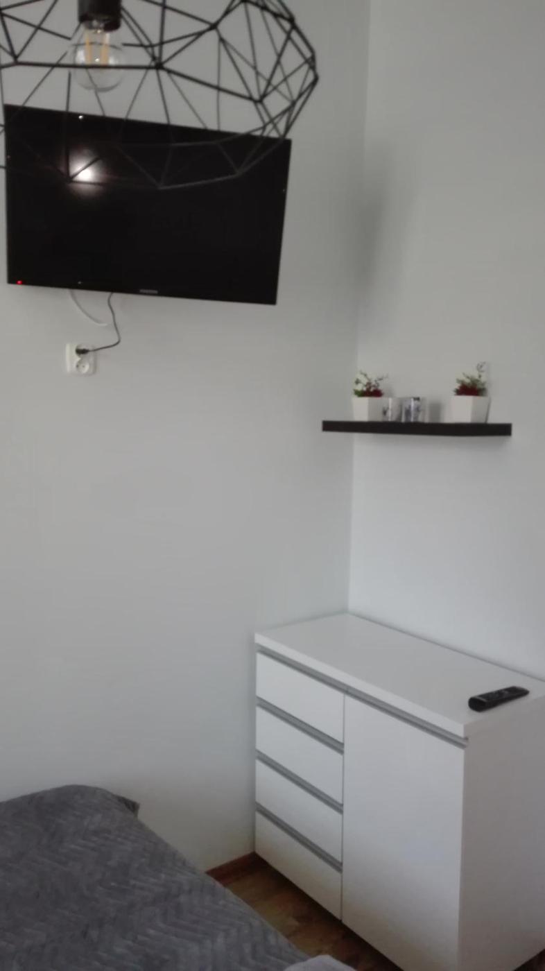 W pokoju znajdują się gniazdka koło łóżka, wieszak na ubrania oraz rozkładana sofa 🛋️. W salonie można wypoczywać na sofie i korzystać z części jadalnej.