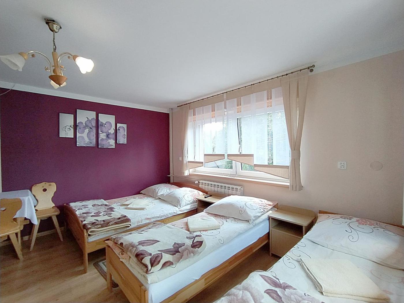 Pokój czteroosobowy z prywatną łazienką. The quadruple room features a private entrance, a tea and coffee maker, a balcony with garden views as well as a private bathroom boasting a shower. The unit has 3 beds. Pokój Czteroosobowy - 4 osobowy. Powierzchnia pokoju ok.: 12 mkw. ;