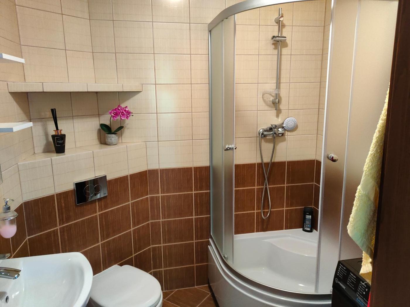 Dom z 3 sypialniami. The hot tub and spa bath are the standout features of this holiday home. Guests will find a stovetop, a refrigerator, a dishwasher and kitchenware in the well-fitted kitchen. The holiday home also includes a barbecue. The spacious holiday home features a washing machine, a private entrance, a terrace with lake views as well as a shared bathroom boasting a shower. The unit has 3 beds. Dom wakacyjny - 6 osobowy. Powierzchnia pokoju ok.: 128 mkw.
