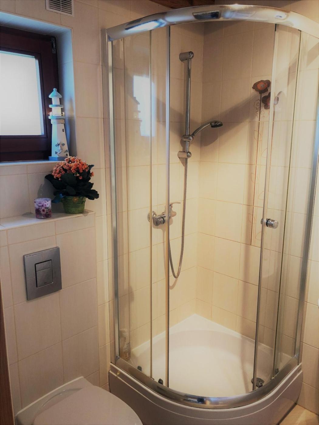 Dom z 2 sypialniami. Guests can make meals in the kitchen that features a stovetop, a refrigerator, kitchenware and a microwave. This holiday home is comprised of a flat-screen TV with cable channels, a shared bathroom as well as a terrace with garden views. The unit has 5 beds. Dom wakacyjny - 6 osobowy. Powierzchnia pokoju ok.: 40 mkw.