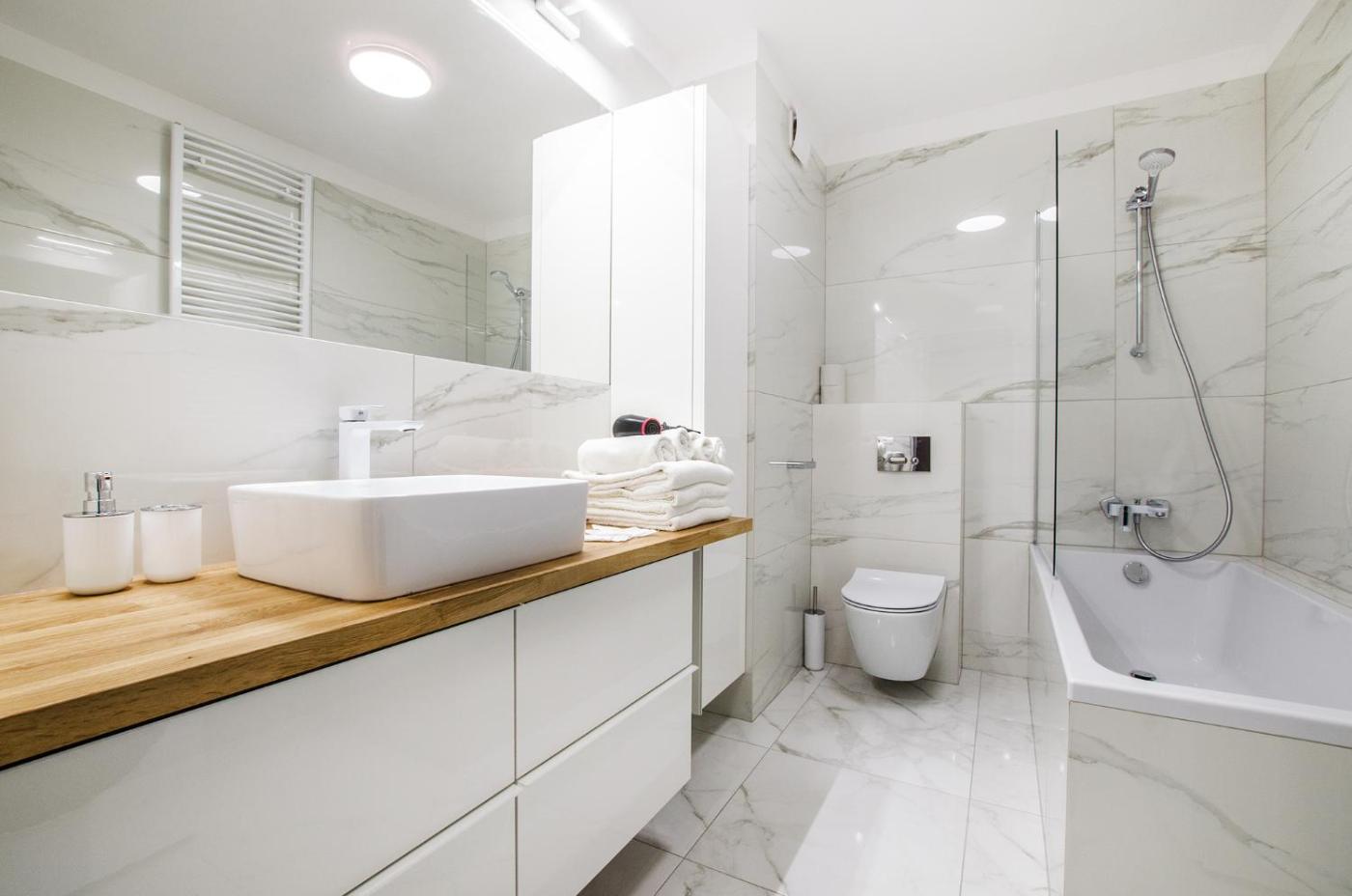 Apartament z 1 sypialnią. This apartment includes 1 living room, 1 separate bedroom and 1 bathroom with a bath and free toiletries. The well-equipped kitchenette has a stovetop, a refrigerator, a dishwasher and kitchenware. The apartment offers a flat-screen TV, a washing machine, a dining area, an electric kettle as well as ancourtyard view. The unit has 2 beds. Apartament - 4 osobowy. Powierzchnia pokoju ok.: 45 mkw.
