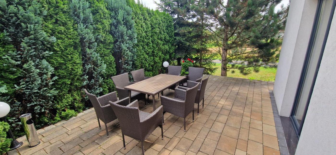 Willa. Boasting a private entrance, this villa includes 1 living room, 4 separate bedrooms and 2 bathrooms with a bath and a shower. In the well-equipped kitchen, guests will find a stovetop, a refrigerator, a dishwasher and kitchenware. Featuring a terrace with garden views, this villa also offers a tea and coffee maker and a flat-screen TV. The unit has 8 beds. Willa - 10 osobowy. Powierzchnia pokoju ok.: 180 mkw.